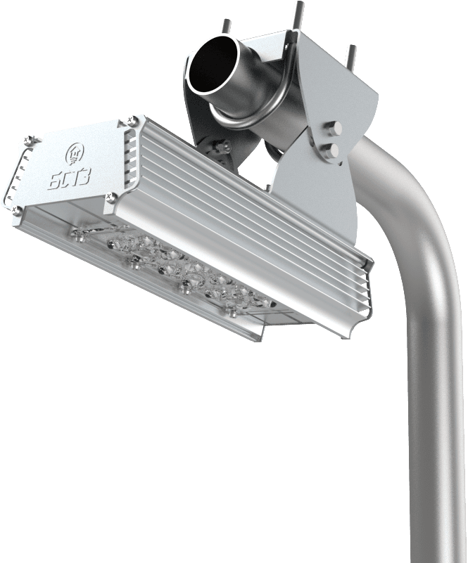 - Светильник может быть доукомплектован регулируемым креплением. Это позволяет устанавливать его как на стены фасада зданий, так и на опору освещения.
