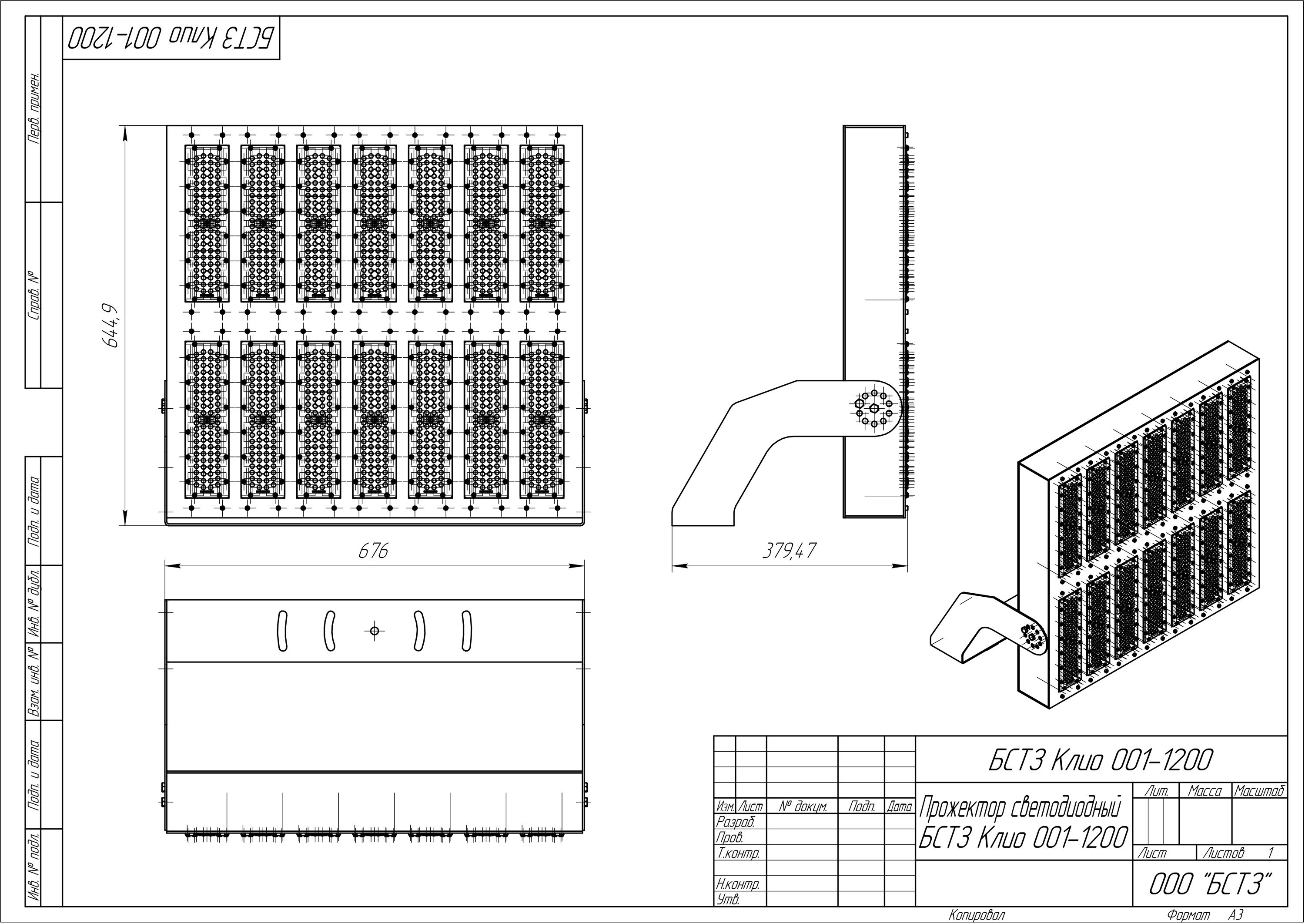 Прожектор светодиодный БСТЗ Клио 001-1200 168000-3000-67-90-7