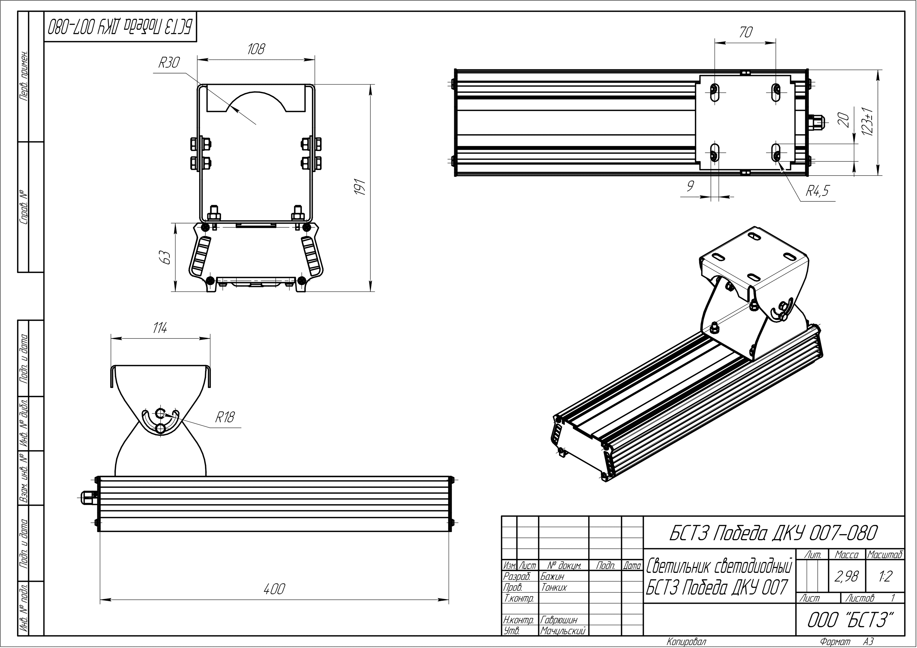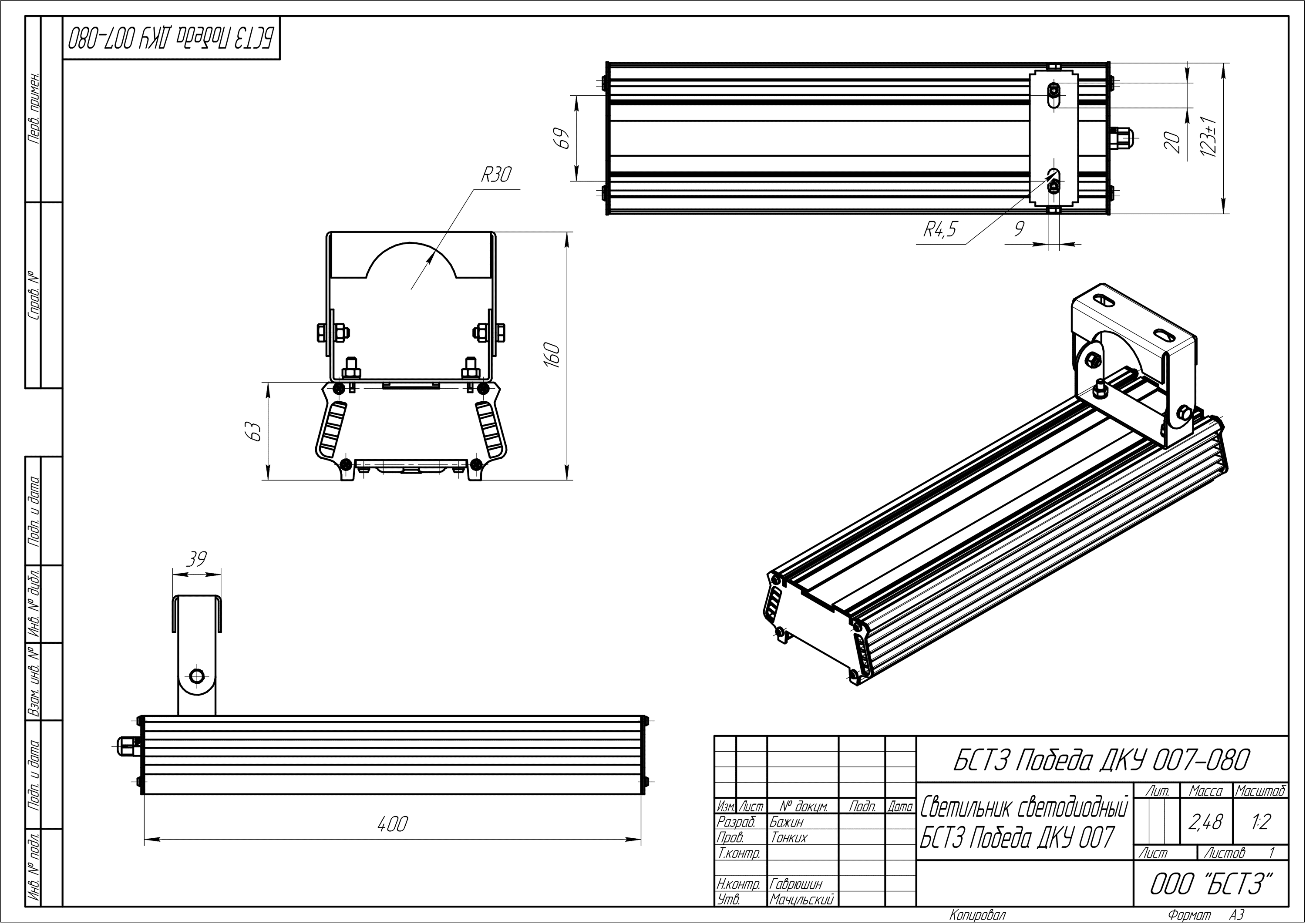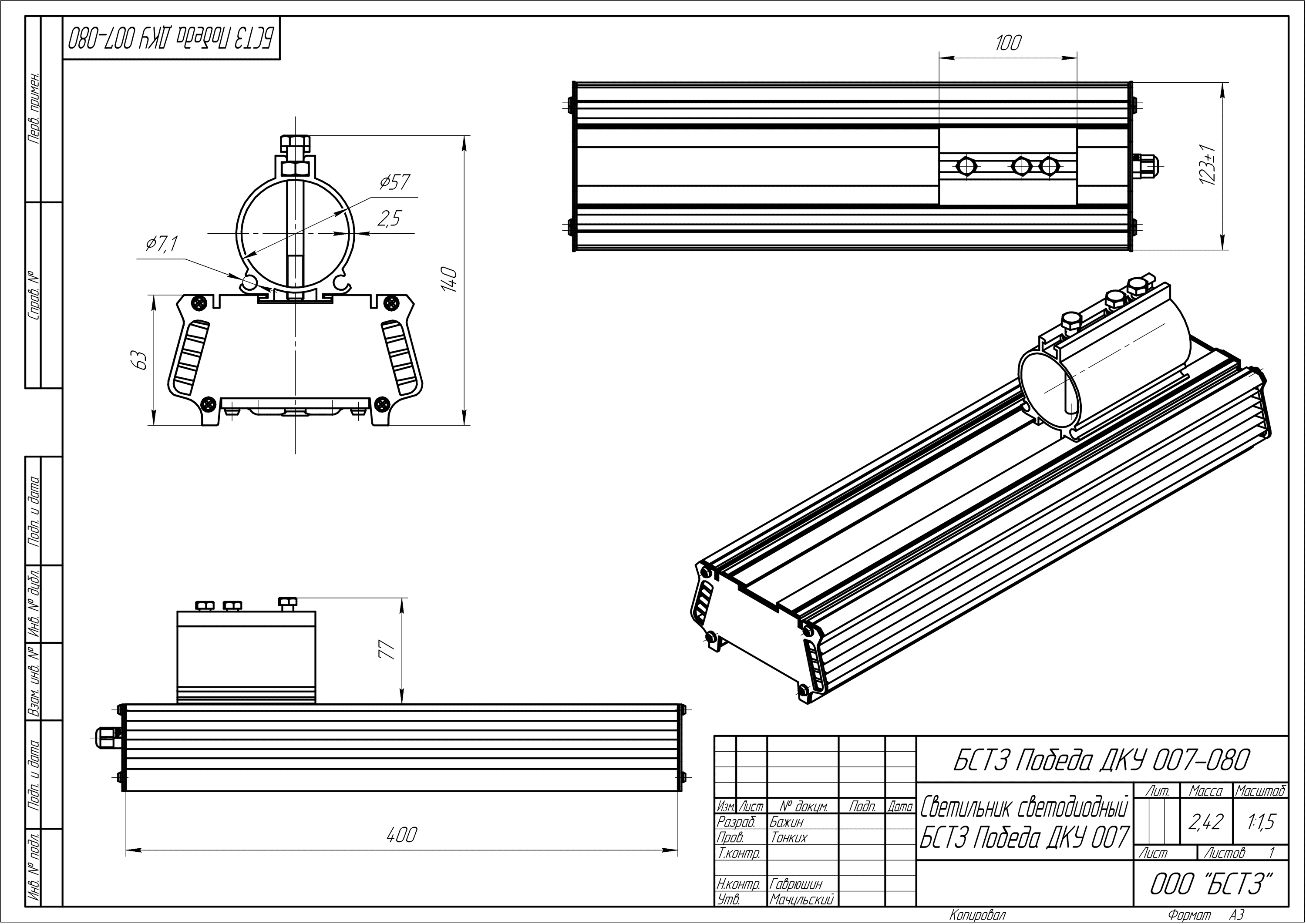 Светильник светодиодный БСТЗ Победа ДКУ 007-080 11200-5000-67-140-5 (Стандарт)