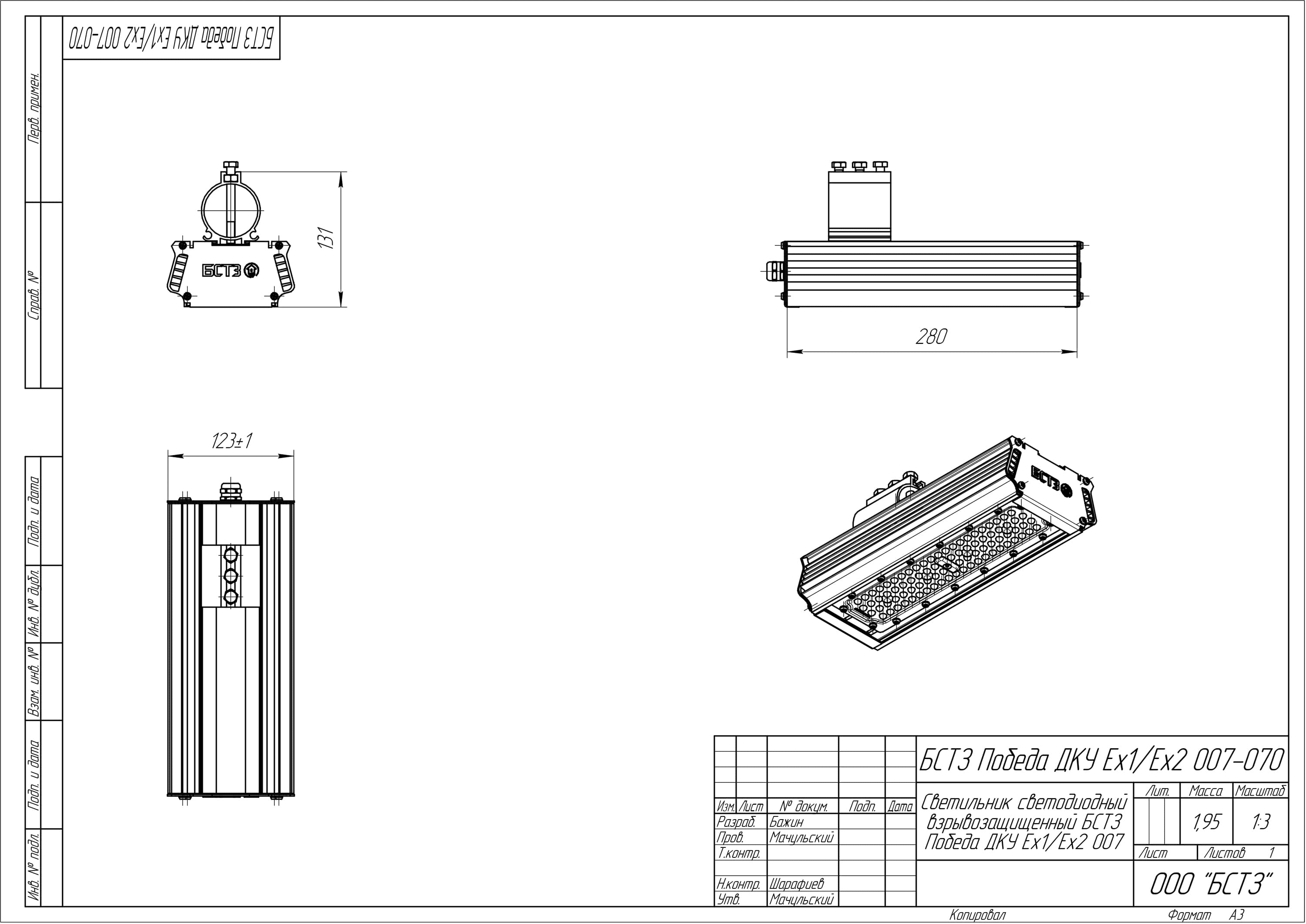 Светильник взрывозащищенный БСТЗ Победа Ex1 007-070 предназначен для освещения шахт, химических цехов, нефтеперерабатывающих и металлургических заводов, АЗС и др.